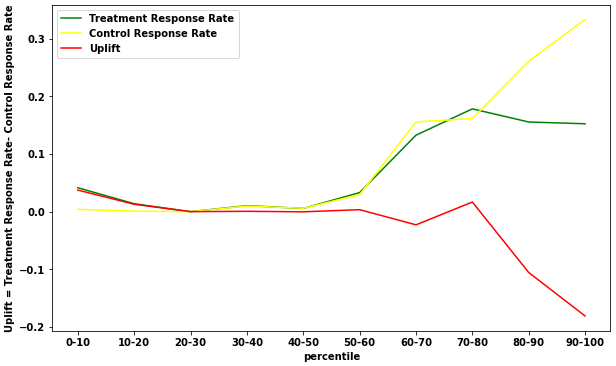 ylabel='Uplift = Treatment Response Rate- Control Response Rate')