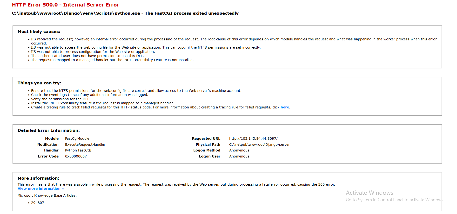 Python版本:3.8.8 IIS 8如果您需要知道任何其他库的版本来回答,请评论。