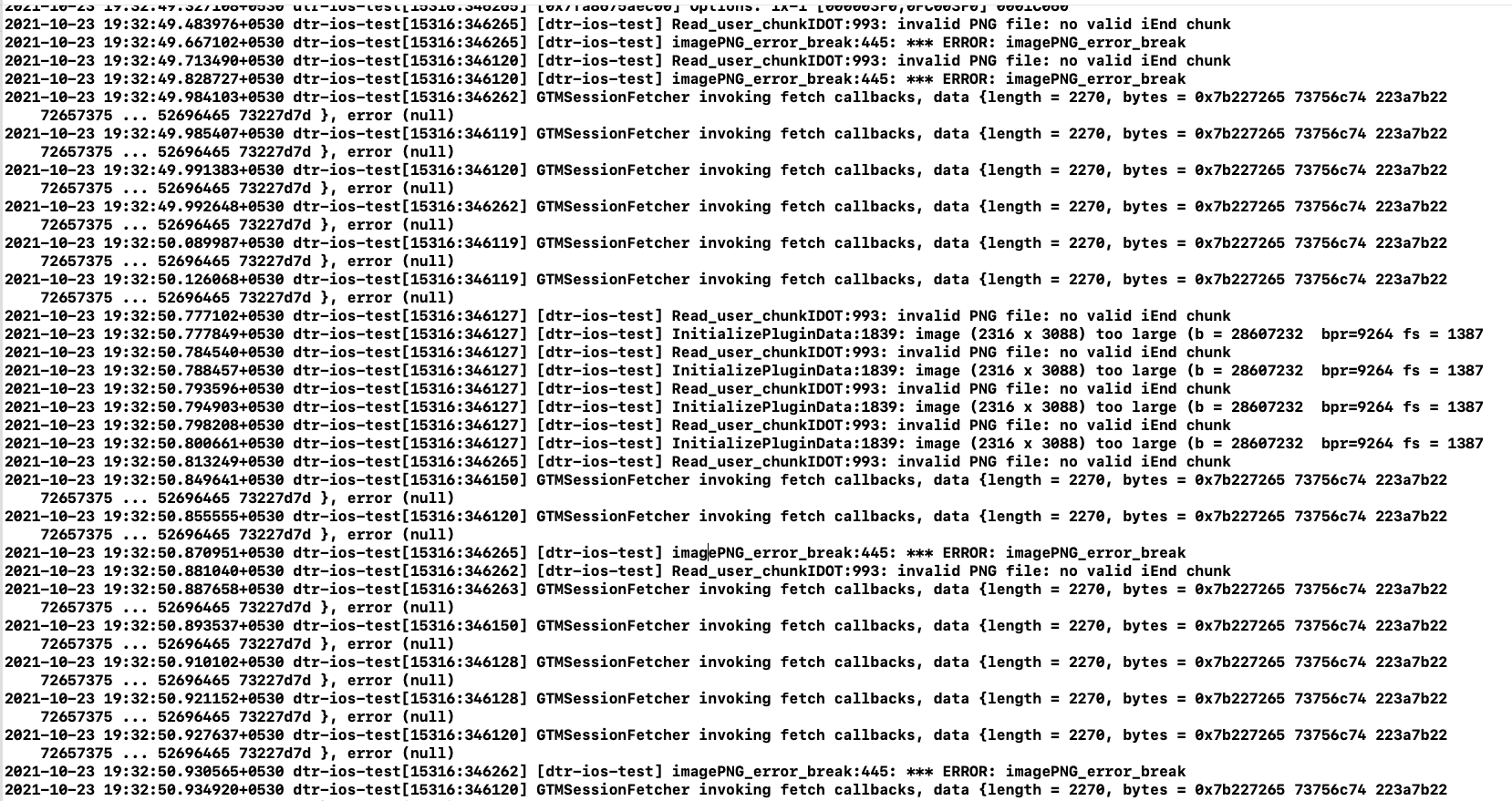 GTMSessionFetcher调用获取回调,数据{长度= 2270,字节= 0x7b227265 73756c74 223a7b22 72657375 . 52696465 73227d7 },错误(null)