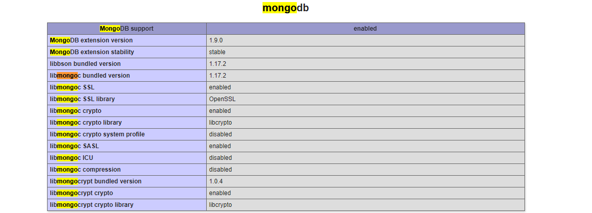 然而,当我查看我的phpinfo页面时,mongodb扩展就在那里: