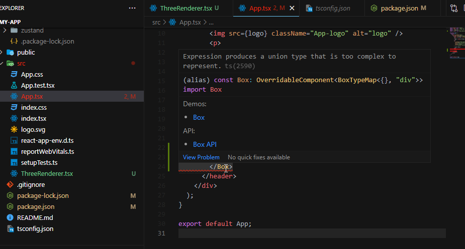 这个错误背后的原因是什么?我只从Box导入mui组件。有类型混淆什么的吗?解决方案/解决办法是什么?