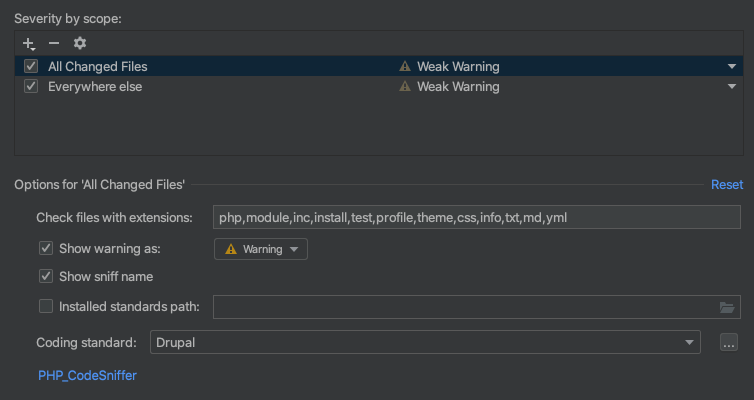 我有一个Drupal 8安装,我想在这里使用squizlabs/php_codesniffer和PhpStorm。