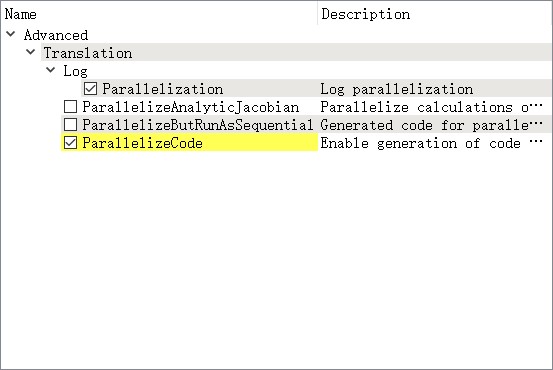 通常Dymola会在翻译日志中输出No Parallelization,大概是由于模型不允许并行化(高效)。此外,手动声明:应该注意的是,对于许多类型的模型,内部依赖项不允许高效的并行化以获得任何实质性的速度。