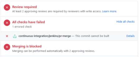 我们已经确认B项目实际上是在提交PR时在Jenkins代理上启动一个构建。问题是GitHub没有在公共关系的网页上显示continuous-integration/jenkins/pr-merge。我们需要这样做,这样如果构建失败,PR就可以被阻止,而且这样我们就可以快速地看到出了什么问题。