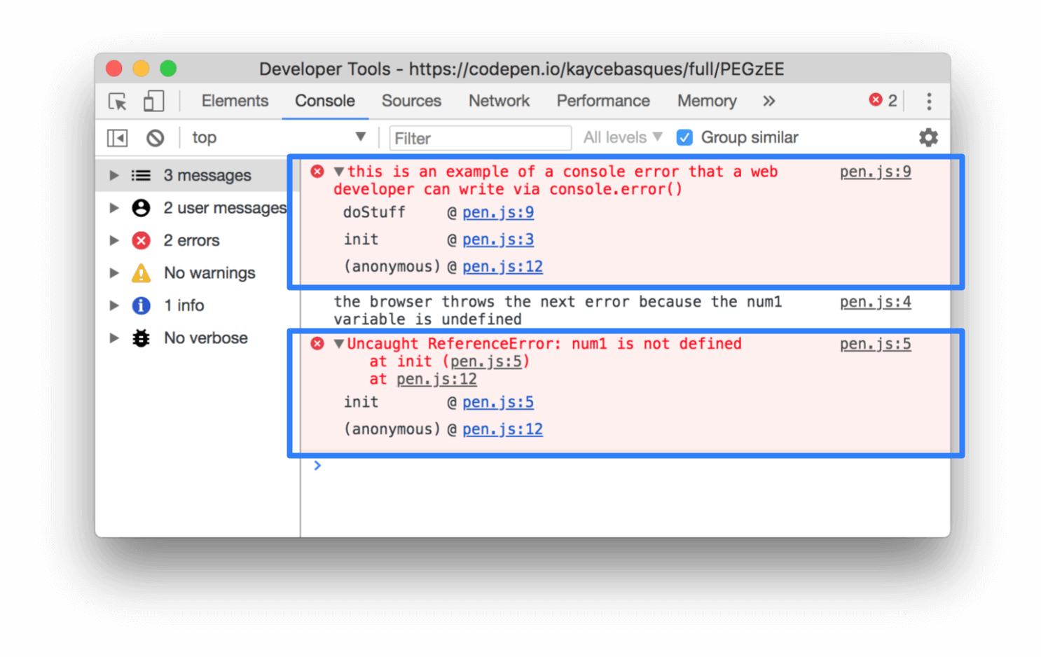 我在一位开发人员的Chrome工具中看到,他有一个侧边栏,可以轻松地在控制台中的错误和警告之间单击。但是,我没有这样做,控制台输入只是在整个开发工具的宽度范围内进行规划。如何在控制台上添加此侧栏,以便在消息类型之间单击?谢谢