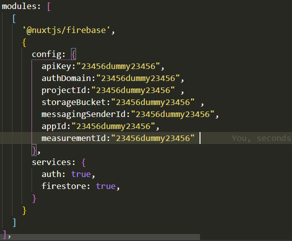 根据文档,我首先在"npm安装防火墙“的帮助下安装了防火墙,然后安装了"npm @nuxtjs/ firebase”,第三,我在nuxt.config.js中的模块中集成了防火墙配置。