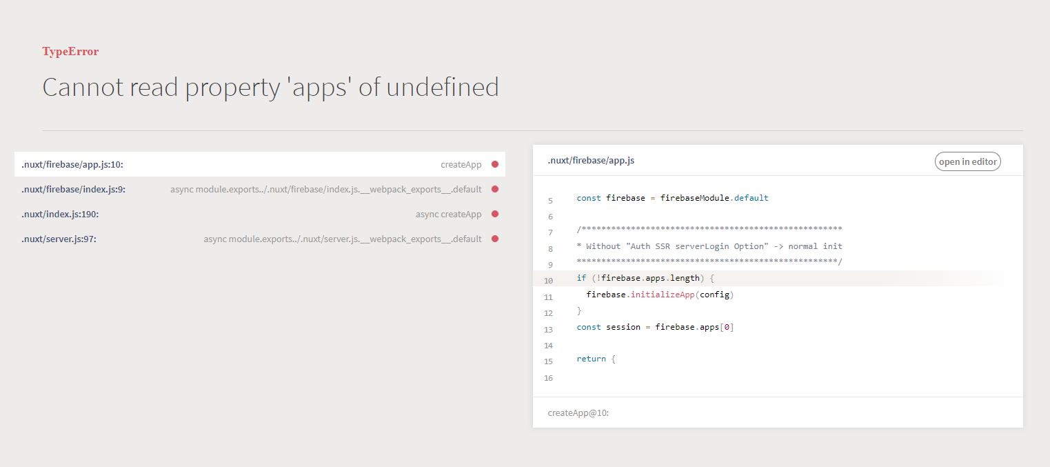 我已经尝试将firebase与Nuxt Js集成,并且我得到了这个错误。