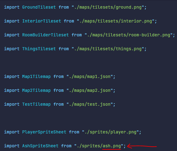 npm run build 的输出--注意--很清楚,不包括ash.png,而包含在同一个文件夹中的player.png。这两个文件都以相同的方式导入,如上面所示。❯ npm run build
