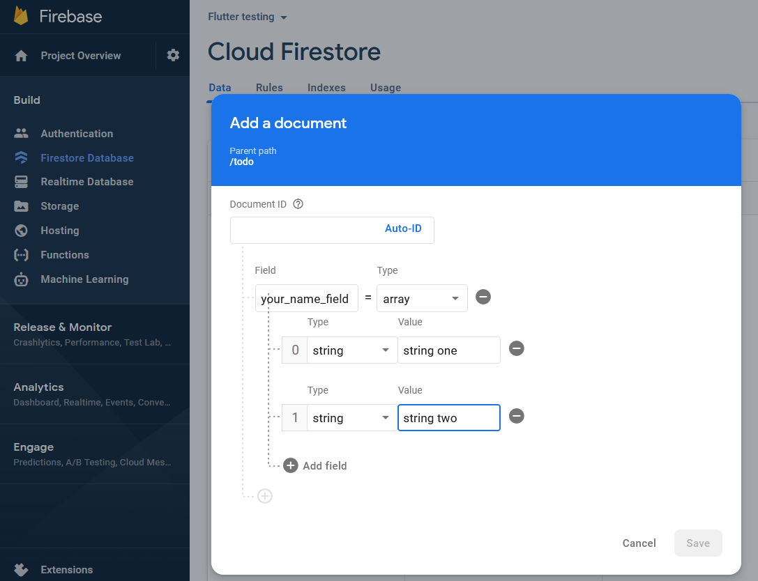 打开GoogleFi还原数据库仪表板,检查哪些类型可以拥有您的集合文档。