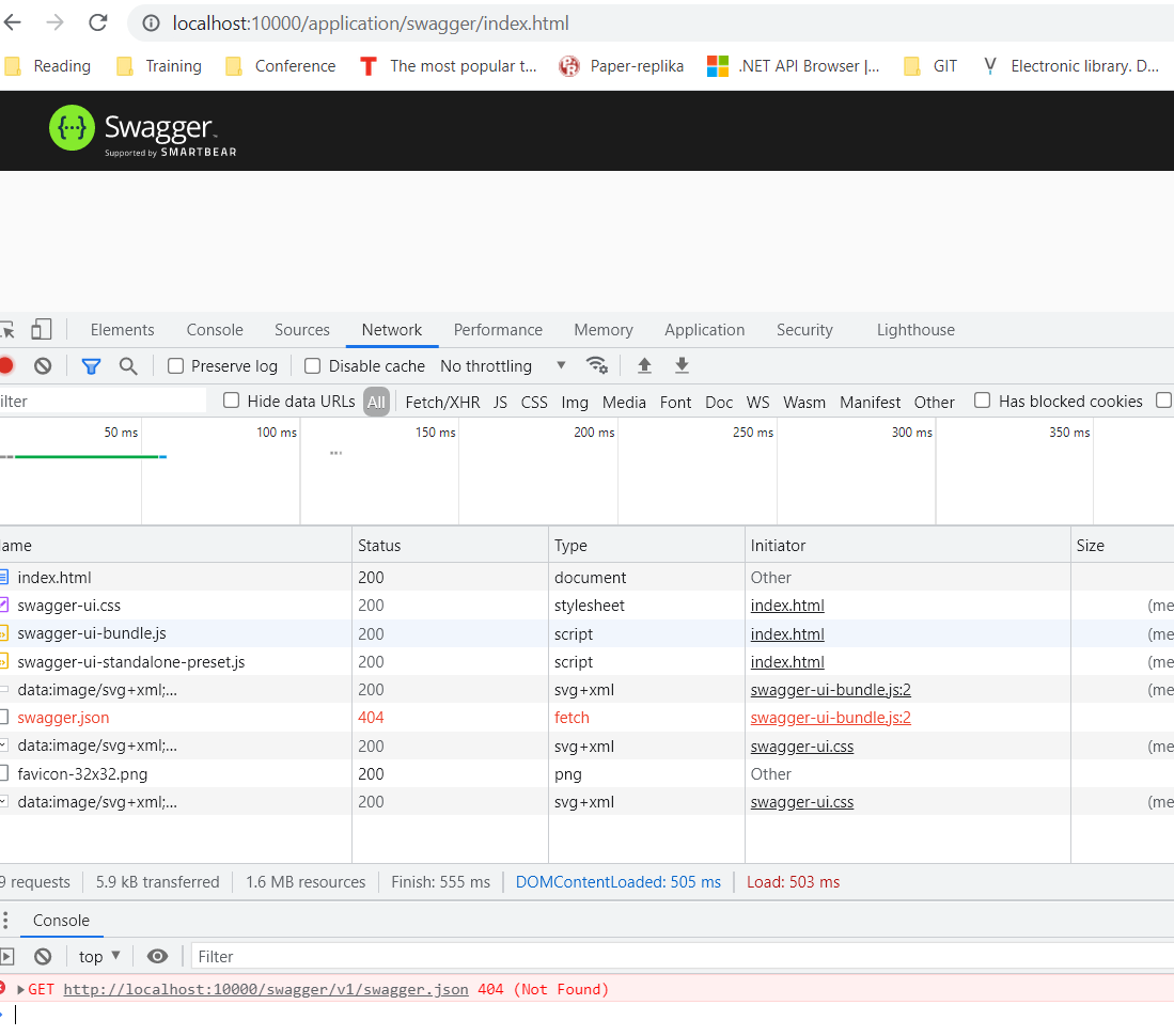 新的特使代理,我有一个简单的ASP.Net核心API与openapi/swagger和它的容器。有一个特使代理正在调用控制器,这是完美的工作。但是,当从特使代理访问swagger用户界面时,找不到swagger.json: