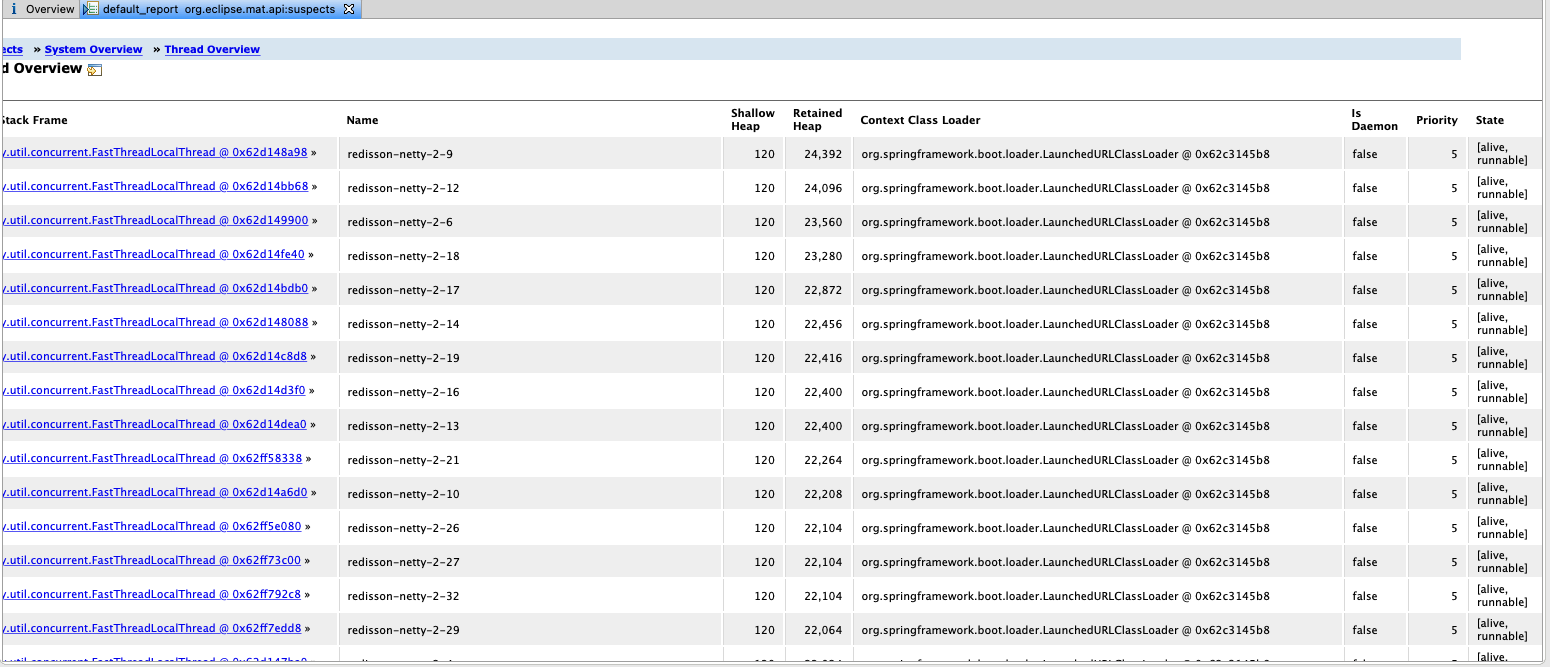 对于简单的缓存操作,我使用springboot-redission,使用redission客户端作为单例bean (Springboot),我看到线程转储--许多与redission相关的线程都是活动的。是因为我一直保持着对客户的开放吗?