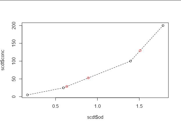 plot(scdt$od, scdt$conc, type = "l", lty = 2)