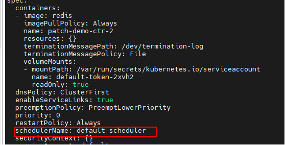 在我的实际业务中,我需要更改一个吊舱的调度程序名。因此,我更改了validation.go文件中的验证代码。我创建了第二个调度器,名为kube-调度器测试。当我创建一个新的它的调度程序名为kube-调度程序测试。,其调度器名为kube-调度程序-测试,那么kube-调度程序测试将将pod的调度程序名更新为默认调度程序。然后默认调度程序将这个吊舱调度到指定的节点上。