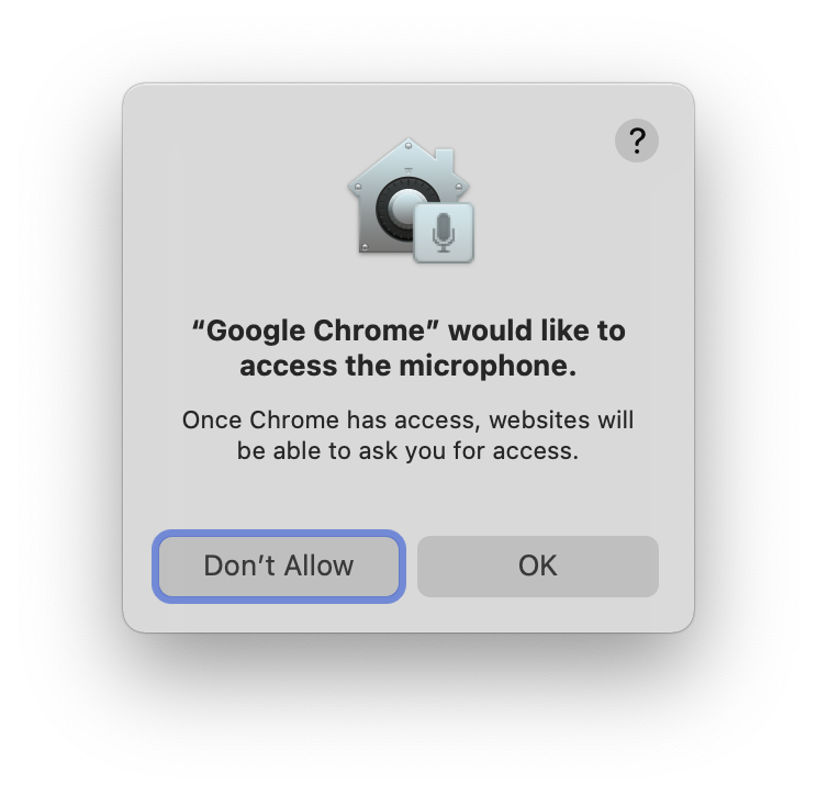 现实生活中的例子是从Google中删除麦克风权限,在终端中运行下面的代码,然后转到google。MacOS将要求Terminal.app的麦克风许可,而不是Google。