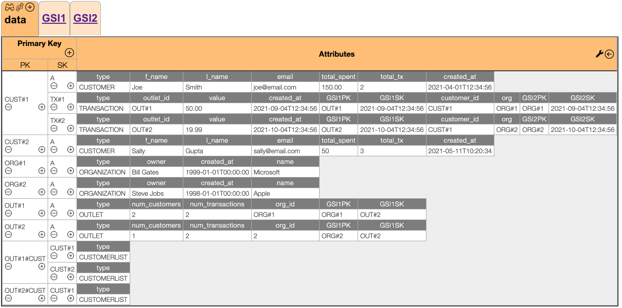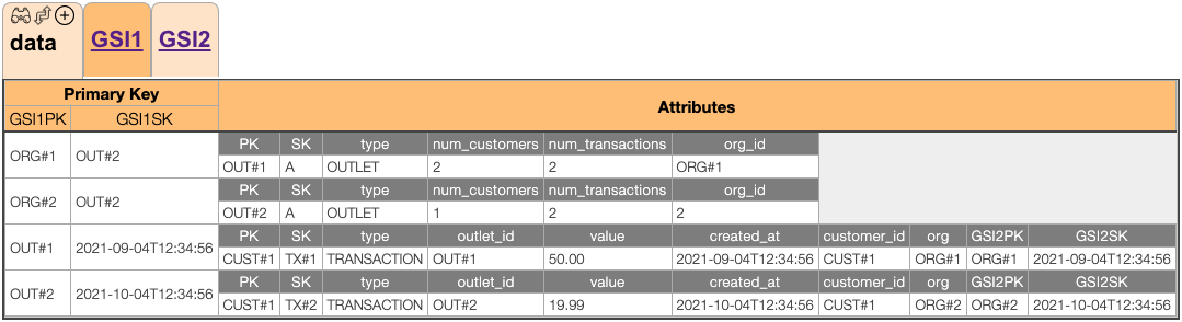 OUT#<id>#CUST和SK = CUST#<id>)。如果这个记录已经存在,DynamoDB将只覆盖现有的记录,这对于您的用例来说是很好的。移动到GSI1上: