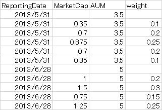 a= (1-df["2013-5"].iloc[1:]['weight'].sum())