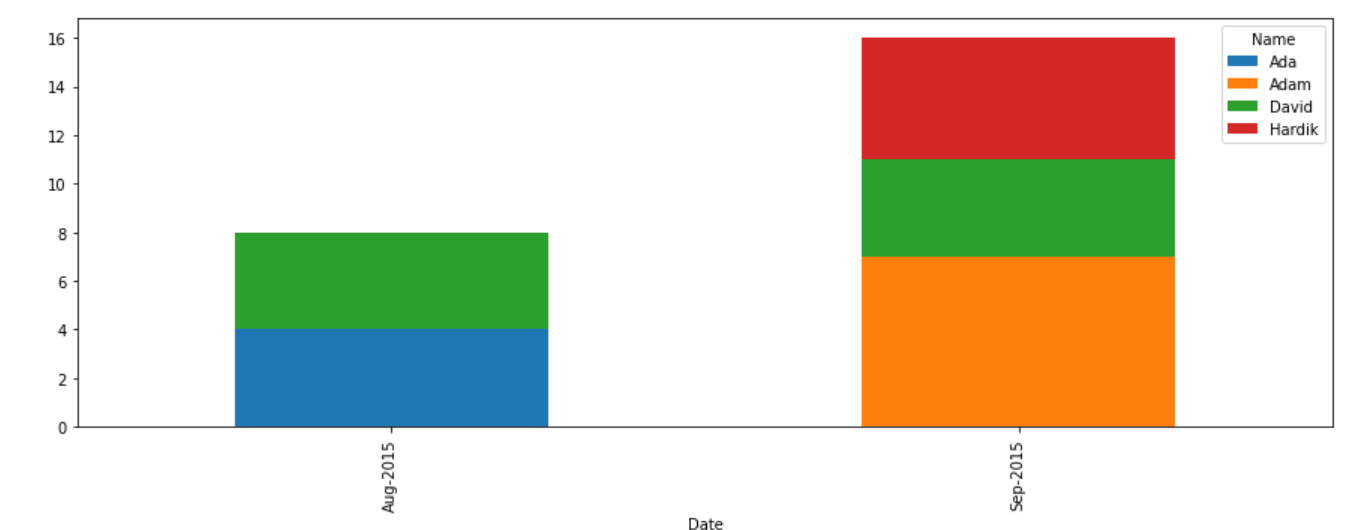 ['Sep-2015' , 'David' ,3,4],['Aug-2015' , 'David' ,3,4],['Aug-2015' , 'Ada' ,3,4]),columns=