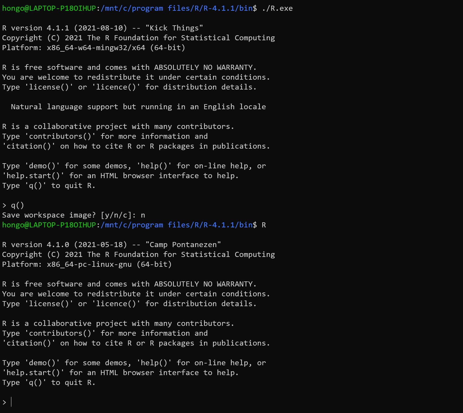 R的Linux和Windows安装是完全分开的,其中包括包。也就是说,您可以在WSL中运行Windows版本,因此不需要维护重复的环境。