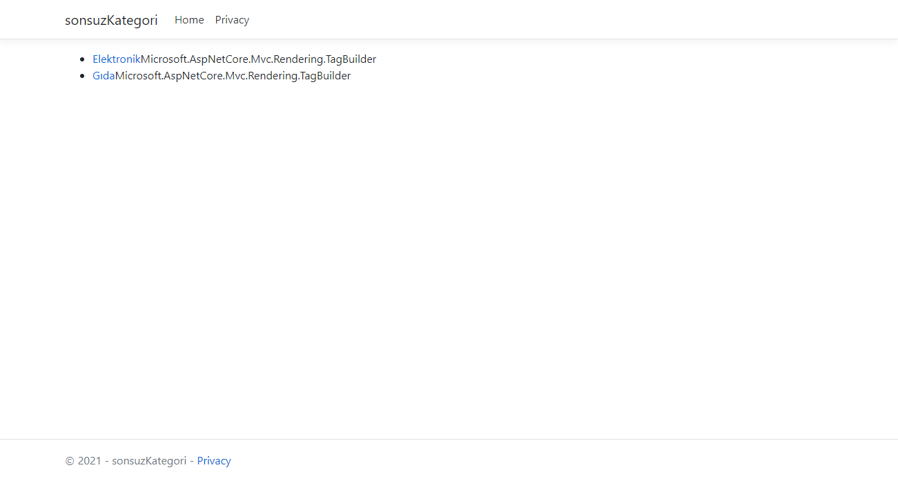 我想用tagbuilder将无限类别系统中的表打印到cshtml屏幕上。写了一些。其中有些不是写的。请帮帮我。