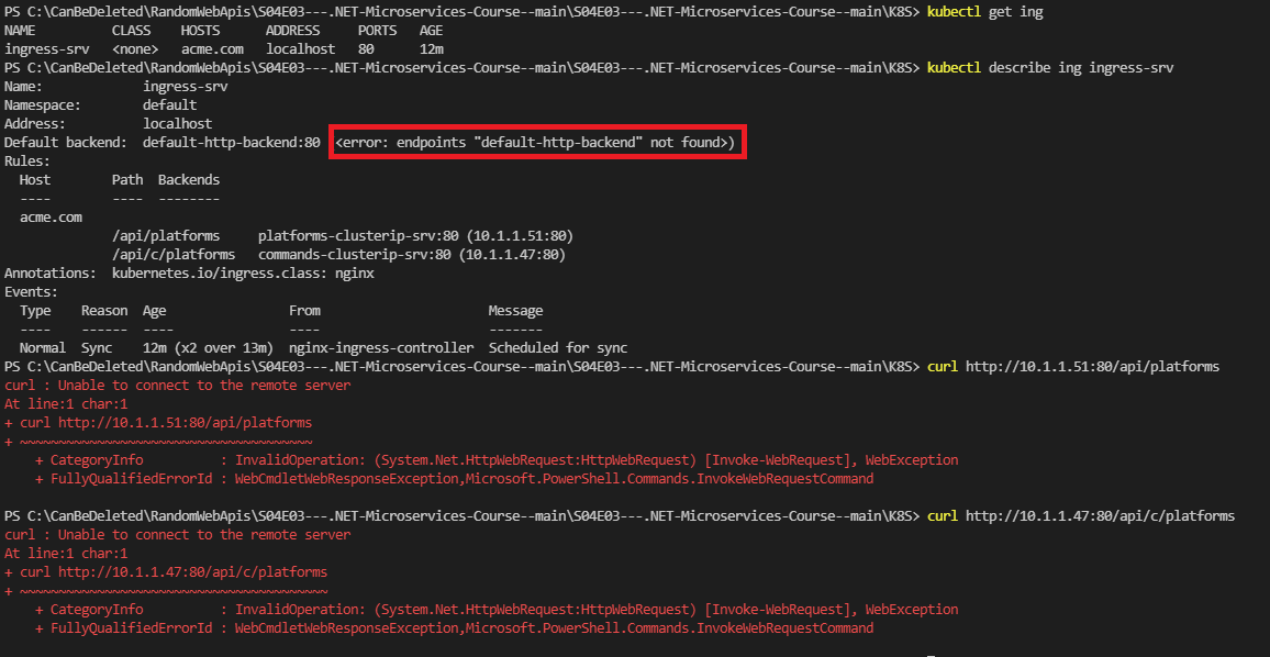 {"apiVersion":"networking.k8s.io/v1","kind":"Ingress","metadata":{"annotations":{"kubernetes.io/ingress.class":"nginx","nginx.ingress.kubernetes.io/use-regex":"true"},"name":"ingress-srv","namespace":"default"},"spec":{"rules":[{"host":"acme.com","http":{"paths":[{"backend":{"service":{"name":"platforms-clusterip-srv","port":{"number":80}}},"path":"/api/platforms","pathType":"Prefix"},{"backend":{"service":{"name":"commands-clusterip-srv","port":{"number":80}}},"path":"/api/c/platforms","pathType":"Prefix"}]}}]}}