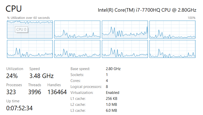 例如,目前,我的windows主机使用了24%的CPU资源。