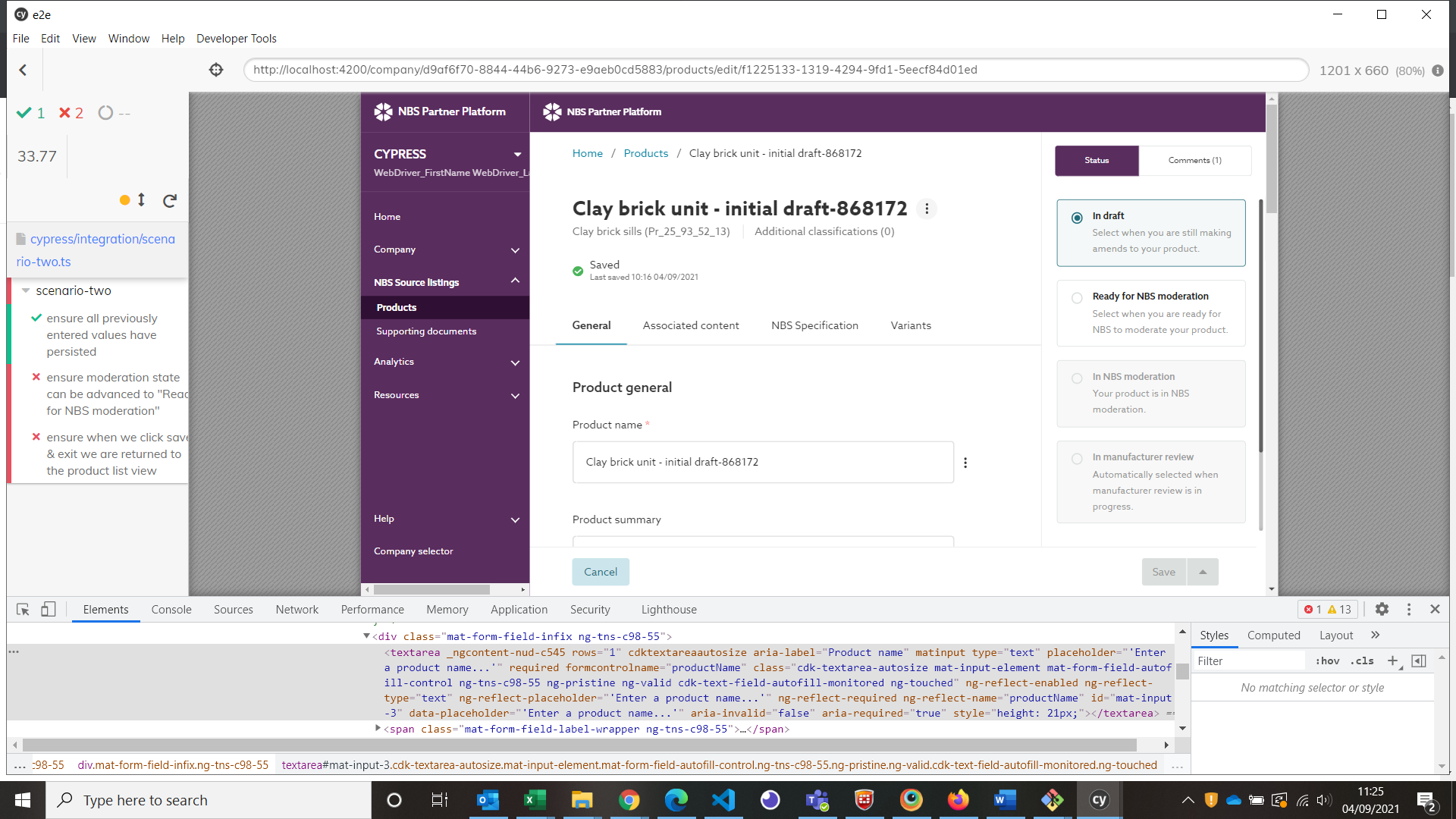 代码说明:我使用‘cy.get(’formcontrolname=“productName‘)’来获取我需要的文本字段,然后创建一个别名'$productName',然后使用.val()函数从文本字段($productName)返回值,然后使用if语句查看文本字段中的值是否包括‘粘土砖单元’,如果它确实输出了‘它找到它’,如果它没有找到输出‘它没有找到它’它没有找到它。