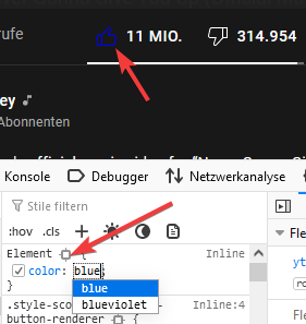 我试图将Youtubes按钮的颜色从默认颜色更改为蓝色: