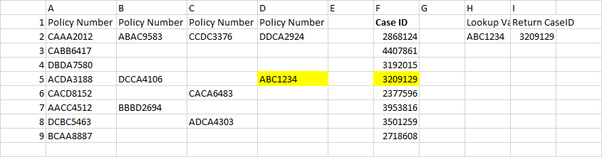 在这里,水平查找不是问题,因为函数可以在一维水平或垂直单元格范围内查找值。但是,您不能使用XLOOKUP()在2D数组中找到这样的值;使用那些数字大小写ID和使用Microsoft365,您可以尝试: