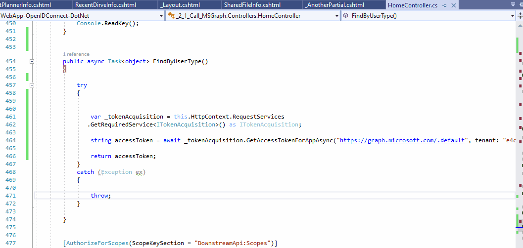.EnableTokenAcquisitionToCallDownstreamApi(initialScopes)