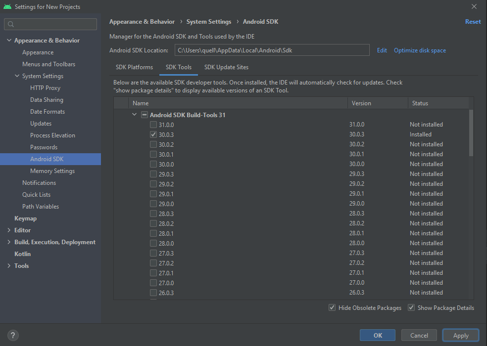 Using Android SDK: C:\Users\Amir\AppData\Local\Android\Sdk