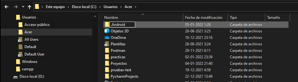 在Users\Usuario.android文件夹中