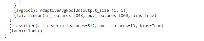 在这里,(avgpool): Linear(in_features=2048)和(classifier): Linear(in_features=512)有什么区别?