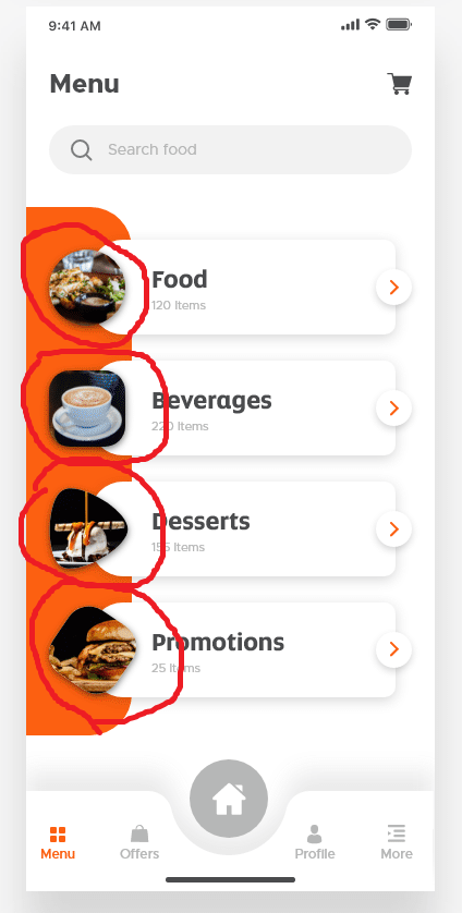 我必须按如下所示设计菜单屏幕,我不知道如何创建具有自定义形状的菜单项.