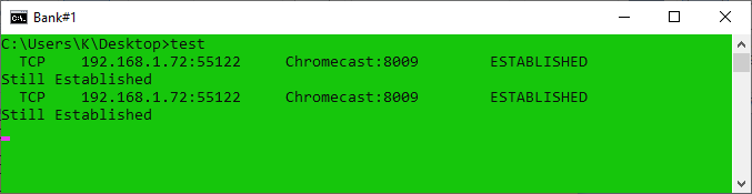 if %errorlevel%==0 color A0 & echo Still Established & goto main