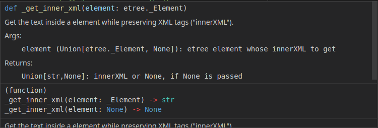 我使用的是VSCodium (vscode的开源版本),安装了绝地和pyright。这导致函数文档字符串被显示了两次(见附图),绝地武士和pyright都展示了它们。