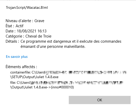 编辑:inno安装程序现在被视为包含特洛伊木马并处于隔离状态。
