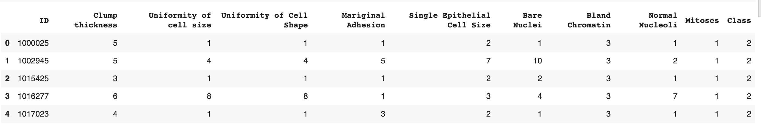 我正在使用乳腺癌-威斯康星州数据集,如下所示: