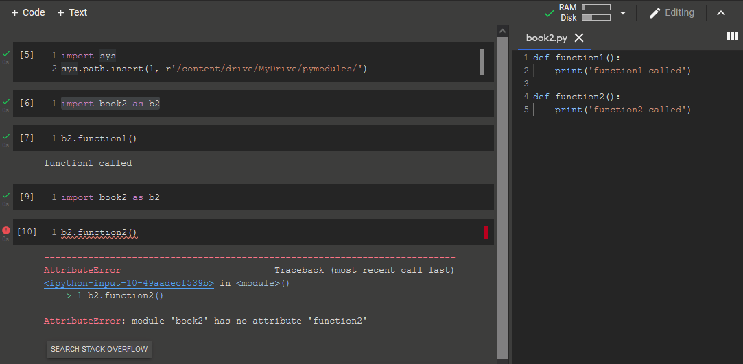 AttributeError: module 'book2' has no attribute 'function2'我尝试重新装入驱动器并重新导入book2,还尝试了以下两个帖子,但它们都没有工作。