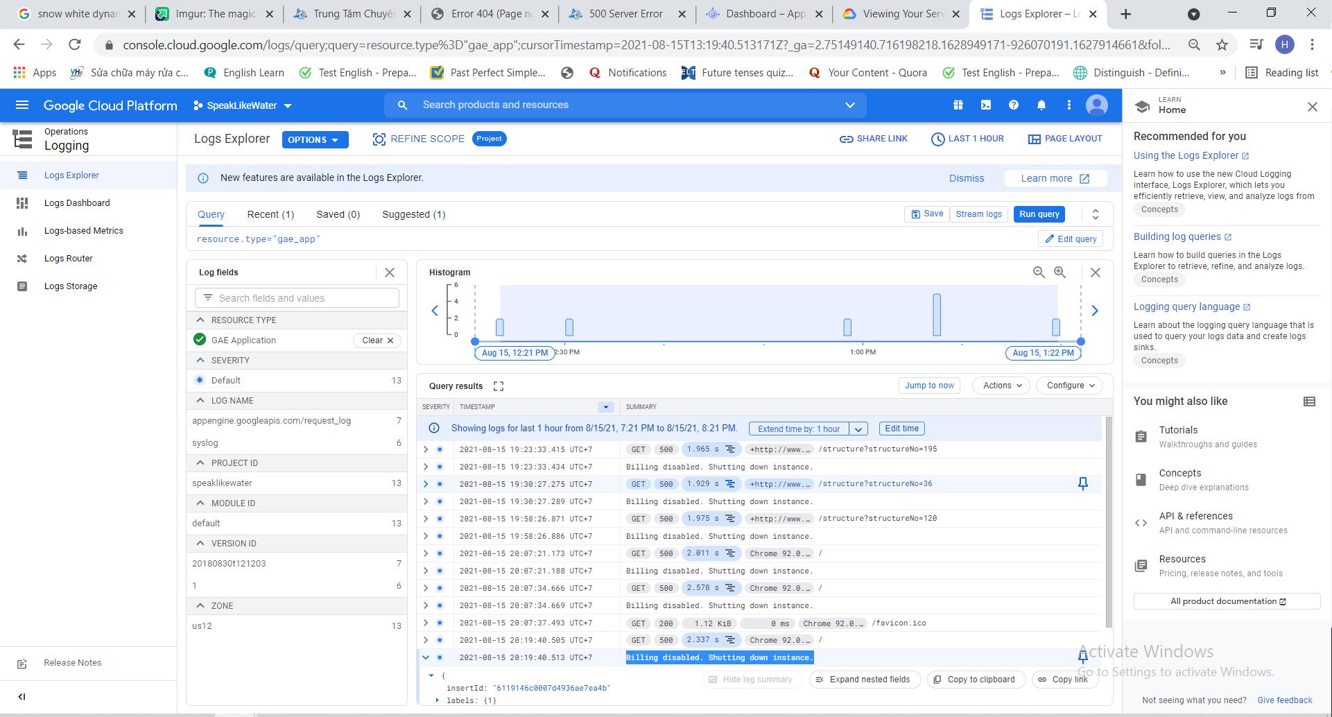 似乎我已经“账单禁用。关闭实例。”,但我从来没有担心收费的东西,自从我推出该网站。