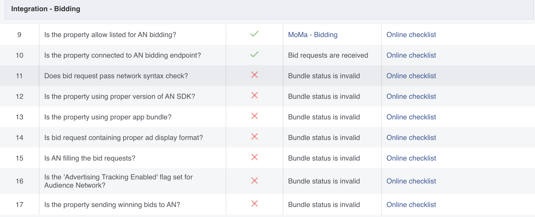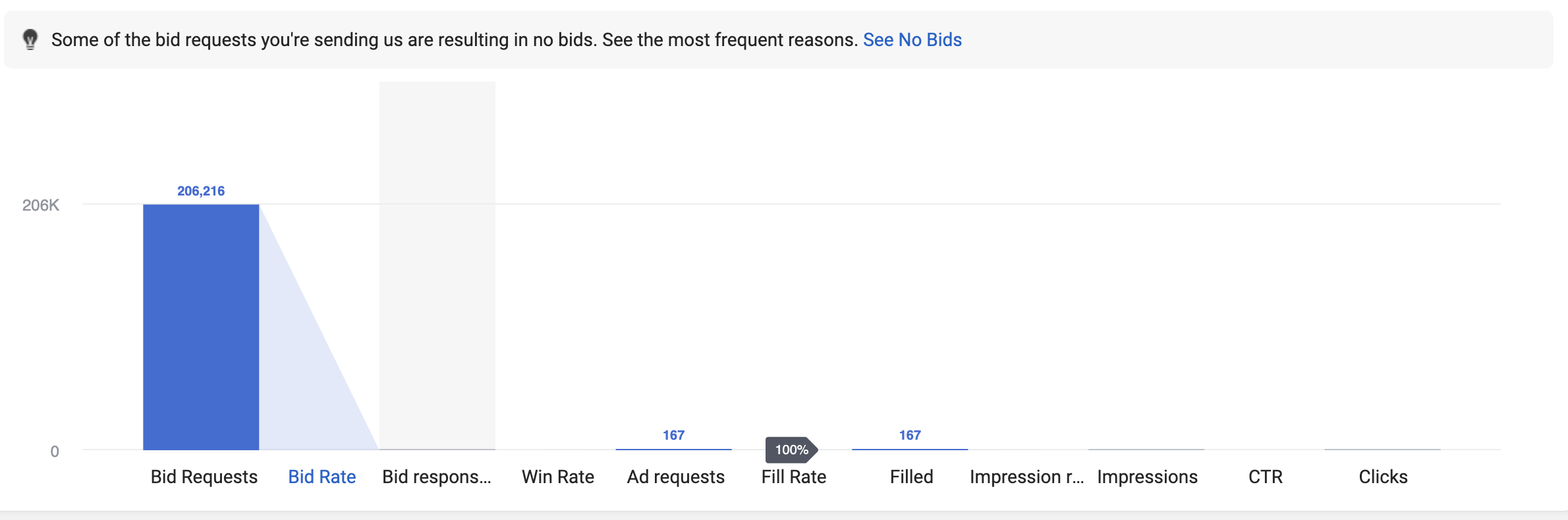 一切看起来都很好;竞价请求正从Admob发送到Facebook。但Facebook对竞购请求几乎没有回应。