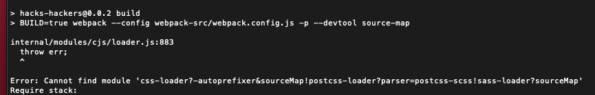 我甚至可以让网站编译,如果我拿出最后一半的行,并只包括“css-加载程序”,但主页样式是坏的。由于某些原因,如果我包含了整个源地图部分,它就无法用错误编译“Entry模块中找不到: Error:无法解决‘css?-自动重定位器和sourceMap’”。