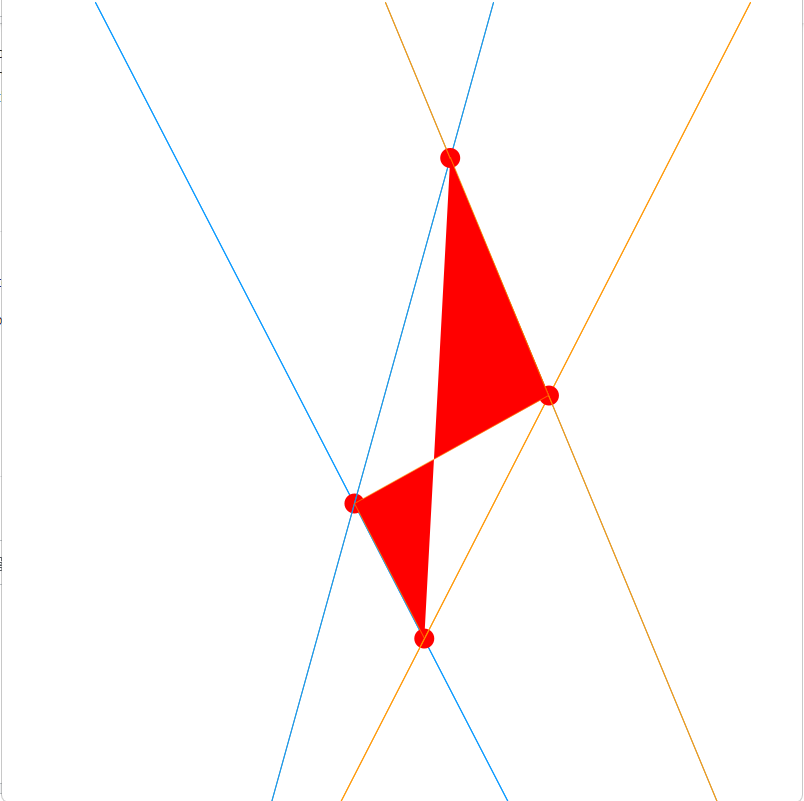 目前看来,您将所有的-- px,py中的点:交点以及定义用于计算交叉点的直线的点放在首位。