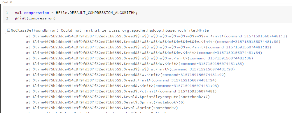 在本地火花测试实例中,它工作得很好,但是在Databricks作业中,它失败了:NoClassDefFoundError: Could not initialize class org.apache.hadoop.hbase.io.hfile.HFile。