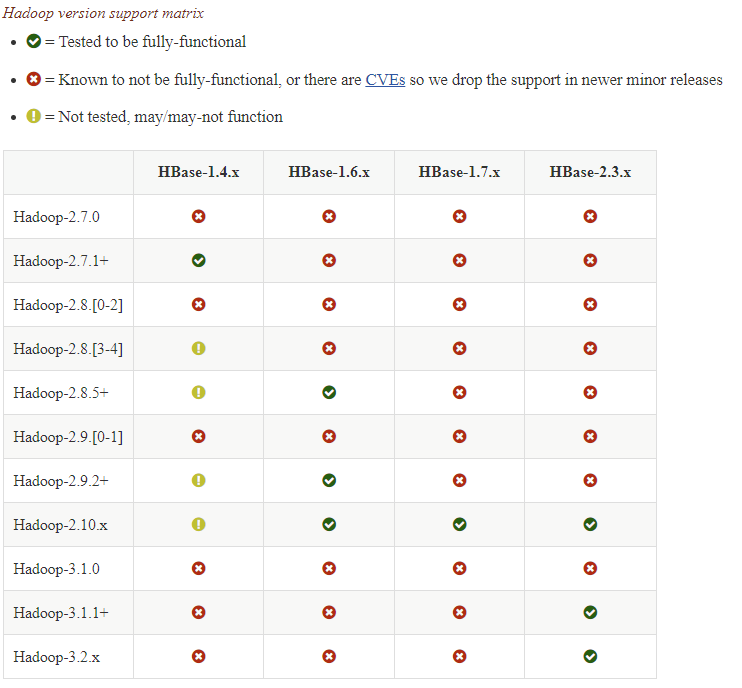 基于HBase的兼容性矩阵,最好知道DataBricks集群默认使用的Hadoop版本,以及如何用兼容的版本替换它们。