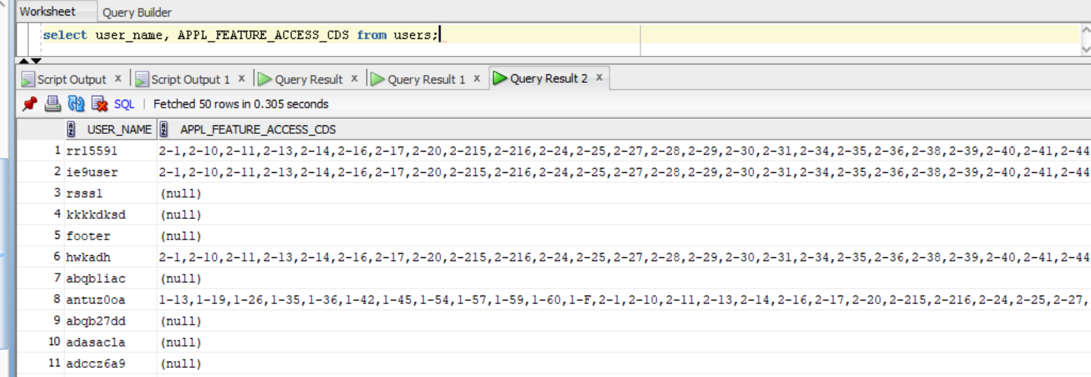 我们在Oracle 10g数据库中有现有的表,其中列数据类似于
