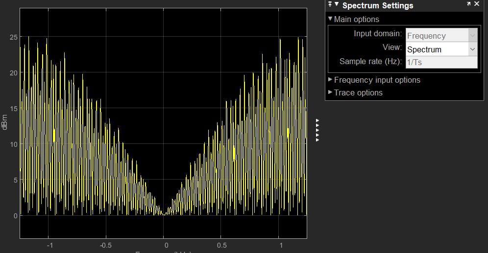 输出应该显示两个峰值在+和-50赫兹,一个在0Hz,因为一个比例项的信号和其他较小的周围,不超过+-50赫兹和0赫兹。
