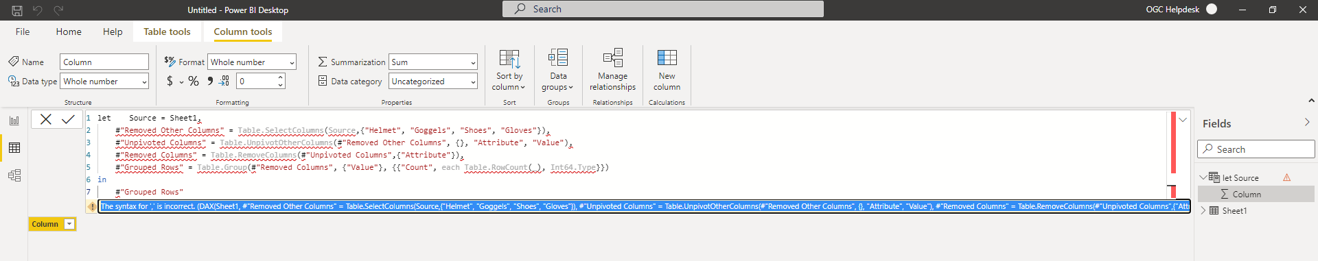 #"Removed Other Columns" = Table.SelectColumns(Source,{"Location", "Helmet", "Goggels", "Shoes", "Gloves"}),