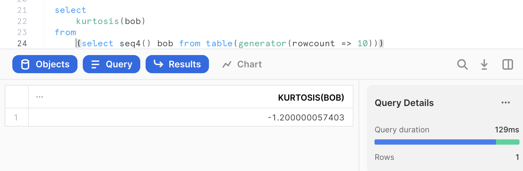 iff(stddev(bob)=0, null, kurtosis(bob))