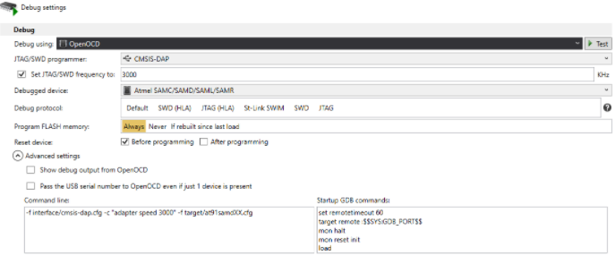 我可以第一次编程和调试这个项目。但问题是,我不能再次重新编程或调试它。芯片上没有引导加载程序。与此晶片通讯的唯一方法是社署。作为调试器,我正在使用Atmel ice。芯片为SAMD21E16B-U。该项目由Atmel起动创建。Visual用作导入项目的IDE。
