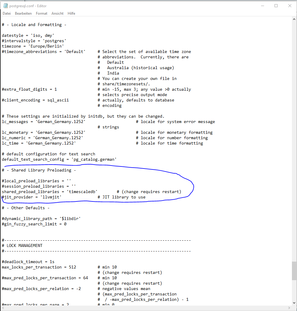 您需要浏览到PostgreSQL文件夹,打开postgresql.conf并向下滚动到